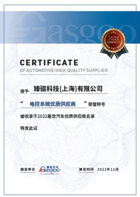 臻驅(qū)科技榮膺蓋世汽車「電控系統(tǒng)優(yōu)質(zhì)供應商」稱號-臻驅(qū)科技(上海)股份有限公司