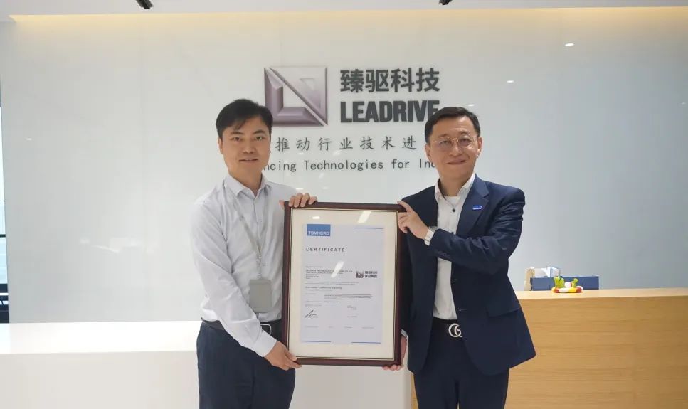現場,臻驅科技副總經理沈皓舜,臻驅科技首席工程師余浩,基礎軟件部研發(fā)經理孫利干,TÜV NORD大中華區(qū)副總裁宋海寧及TÜV NORD中國區(qū)銷售總監(jiān)謝堯等雙方代表出席授證儀式。